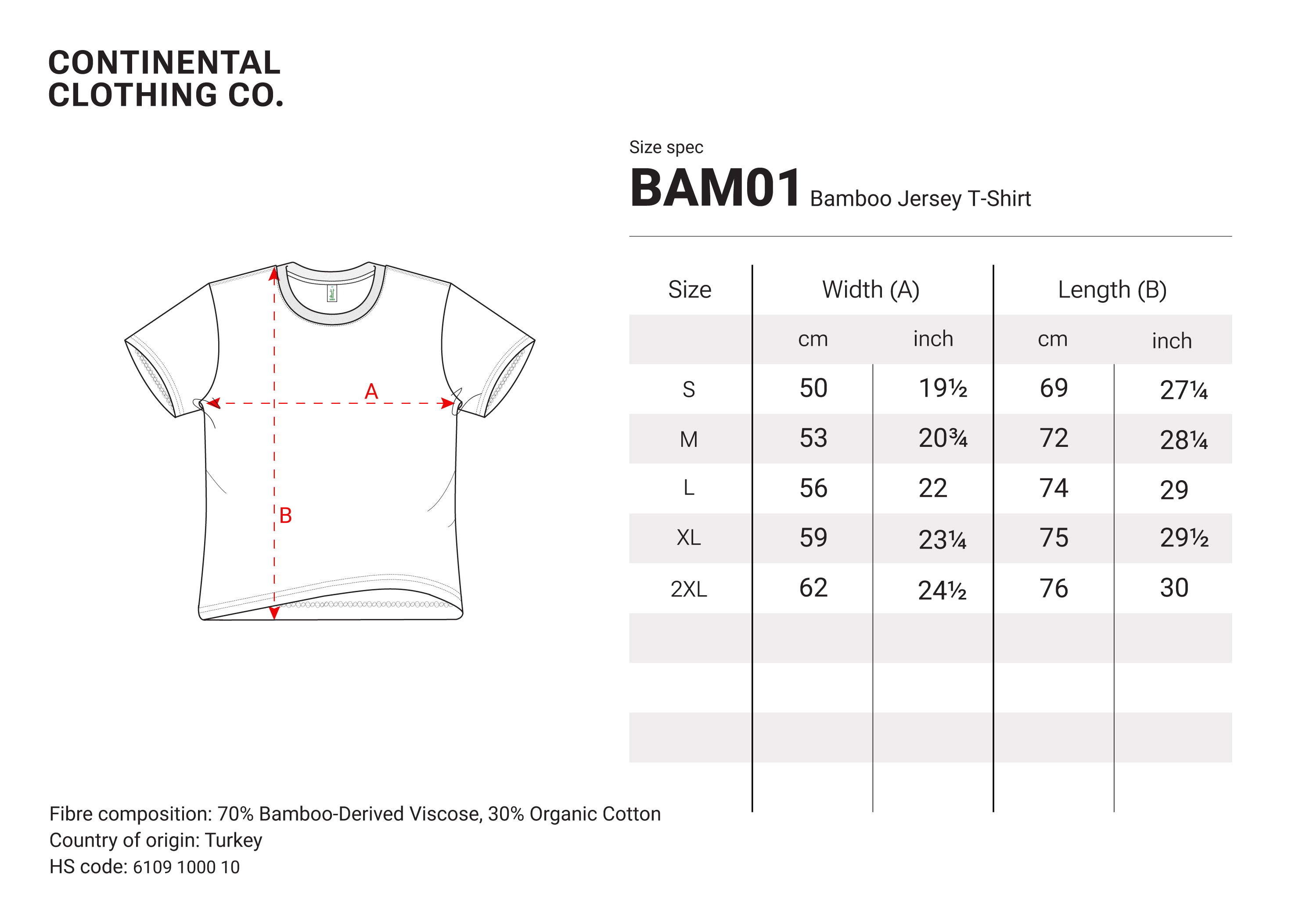 | Material | 70% Bamboo-derived Viscose 30% Organic Cotton Jersey 180g |