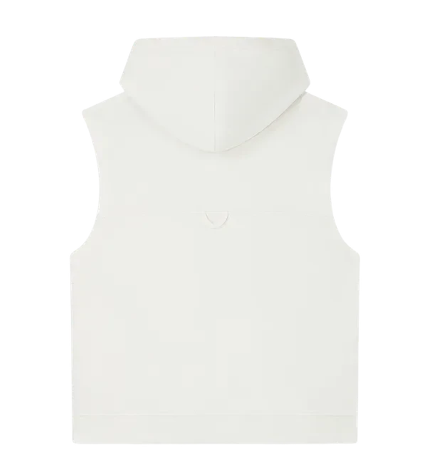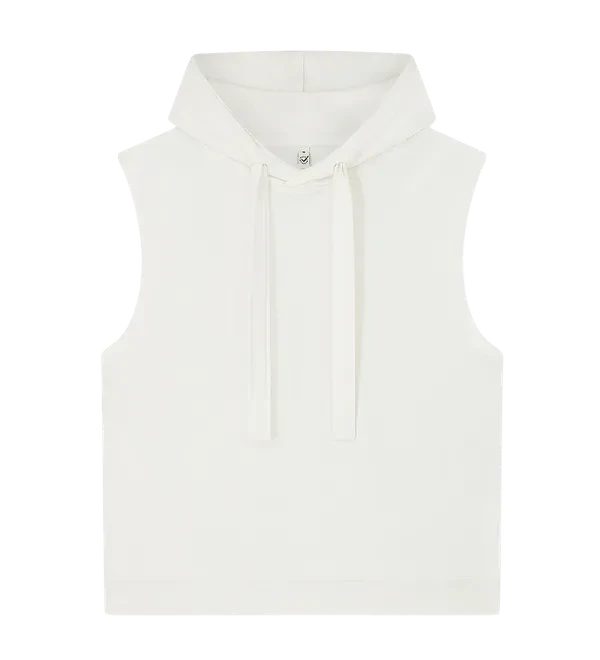 Constructed from 100% organic cotton and finished with a soft sueded texture, the fabric delivers a premium hand feel with everyday comfort. Design details include a modern sleeveless cut, a practical side pocket, and a bold drawstring feature that adds a statement finish.