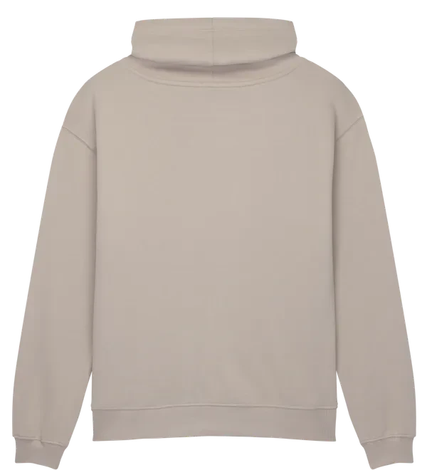 Crafted from substantial 300 gsm organic cotton, the fabric is finished with a soft sueded surface for an enhanced premium feel. The distinctive funnel neckline provides added warmth while maintaining a structured, fashion-led appearance.