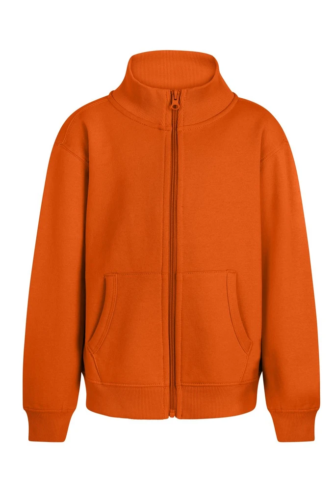 KIDS´ full zip sweatshirt. Brushed Fleece. 60% Cotton - 40% Polyester. 270 g/m² Brushed interior, soft comfortable and warm Nylon zipper Kangaroo pockets with fine binding finish and reinforced seams Non-deformable waistband and cuffs in Jersey fabric 2X1 with elastane Reinforced single jersey inner neck tape Unisex sizes:COOPER