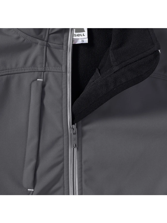 Weight: 320gsm; Material: 94% polyester, 6% elastane, Bionic-Finish® Eco (3 layer softshell with hydrophobic membrane); Fluorine and PFC free, Wind and waterproof (5000 mm), Breathable (5000 g/m² in 24h), Stand up collar, Hydroshell air panels at armpits, Zipped chest, arm and side pockets, Mesh media pocket inside, Adjustable sleeve hems, Contemporary shaped fit, Decoration access inside zip at lining, Suitable for screen print, transfer or embossing. Certificates: STANDARD 100 by OEKO-TEX®; WRAP