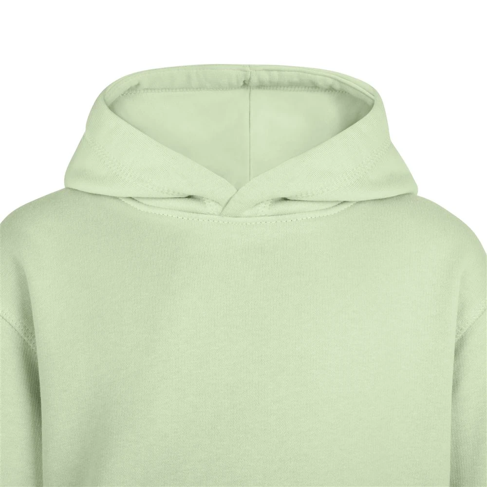 KIDS´ Hooded Sweatshirt. Brushed Fleece. 85% Organic RingSpun Cotton - 15% Recycled Polyester. 300 g/m². Brushed fleece, soft, comfortable and warm 2 panel double fabric hood Kangaroo pocket with fine binding finish and reinforced seams Non-deformable cuffs and waistband in ribbed knit fabric 1x1 Reinforced herringbone inner neck tape No brand label in neckline Unisex sizes: REEF Women´s sizes: REEF WOMAN