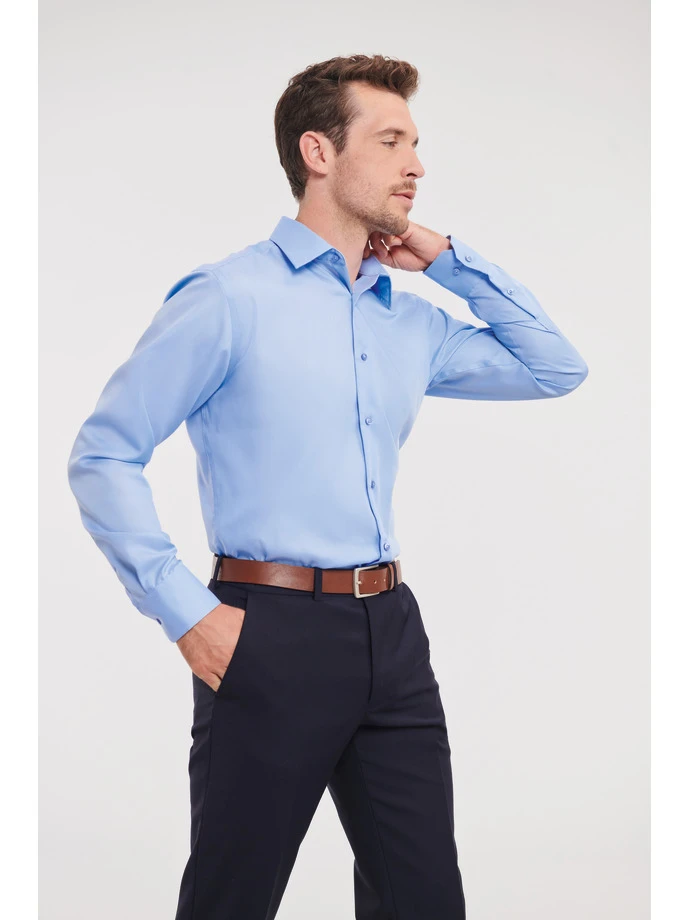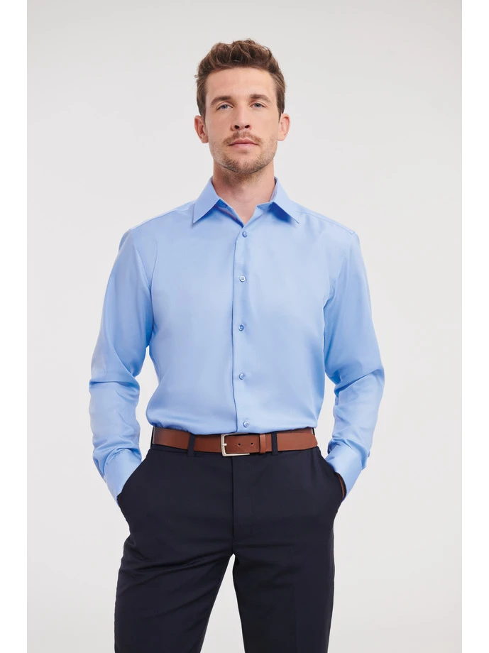 Weight: 120 gsm; Material: 100% Cotton (micro twill); Tailored Ultimate Non-iron Shirt LS; Non-iron fabric that stays wrinkle free, Long sleeves, Stiffened, semi-cutaway boned collar, Shoulder yoke, Tonal buttons, Mitred cuff, adjustable with 2 buttons and with option for cuff links, Tailored fit, Rounded hem, Spare buttons. Certificates: STANDARD 100 by OEKO-TEX®; WRAP