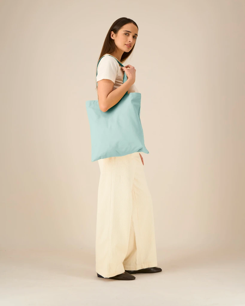 Top edge double folded for strength and clean finish, long handles with reinforced cross stitch