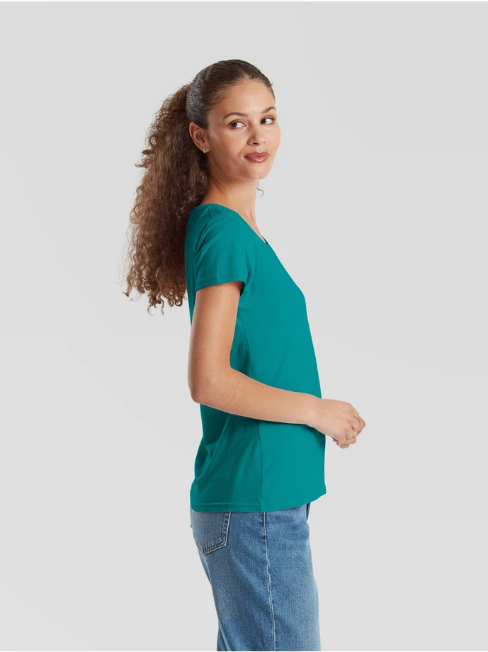 Material: 100% cotton; Heather Grey: 97% cotton, 3% polyester; Ash: 99% cotton, 1% polyester; Weight: 195gsm (white: 190gsm); 100% combed ringspun cotton, soft hand feel, shaped side seams for a feminine fit, performs at 60 degree wash, crew neck with cotton/ LYCRA® rib and twin needle stitching, self-fabric shoulder to shoulder taping; Certificates: STANDARD 100 by OEKO-TEX®; WRAP