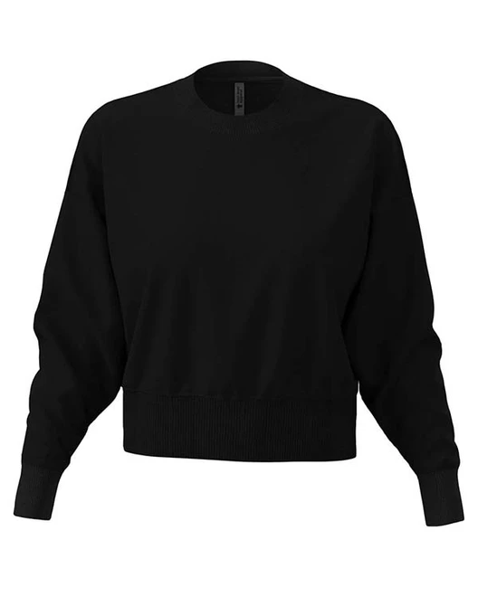N9087-B001Fashionable cropped sweatshirt for women made from a heavy blend of combed cotton and recycled polyester, finished with a printable half moon, wide ribbed cuffs, collar and waistband.